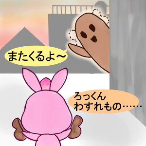 もものりさんがレスの際、ももぴーちゃんがロクをもてなしてくれる絵を添えてくださり、