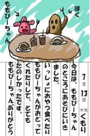 あんまり楽しかったので、絵日記にももぴーちゃんと遊んだこと書いたんだ。
