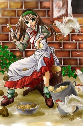 ちょっと、鶏でも脱走させてみようか、と思って描いたら結局こう言う絵に。
