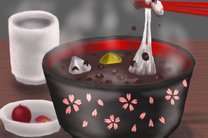リク絵です。 餅の伸びる様子がまあ何とかちゃんと描けたような気がします。 叔母のやってる料理店でしるこ出す時梅干添えてたのでこれにも添えてみました。 実のところ「しるこに梅干って本当においしいのかな?」内心疑ってたんですが 投稿サイトでこの絵に感想くださった方によると本当においしいらしいそうで・・。 叔母上、疑ってごめんよ・・・。 リクエストありがとうございました! 2002年12月 戻る