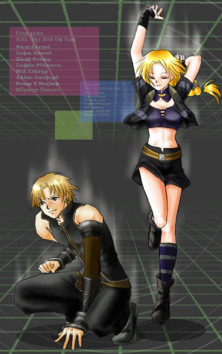 スターオーシャン3のクリフとミラージュ。 この二人の組み合わせ好きなんですよね〜。 オンマウスで元絵にポスタリゼーションかけた画像が出てきます。 ポスタリゼーションかけたらサイバー度が増したような気がします。 2004年10月 戻る